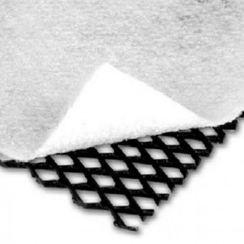 Geocomposto drenagem dimensional que é formada por uma georrede bi-planar de polietileno de alta densidade (HDPE) com um tecido não urdido de polipropileno geotêxtil (PP), fixado por calor, colada a um dos seus lados.